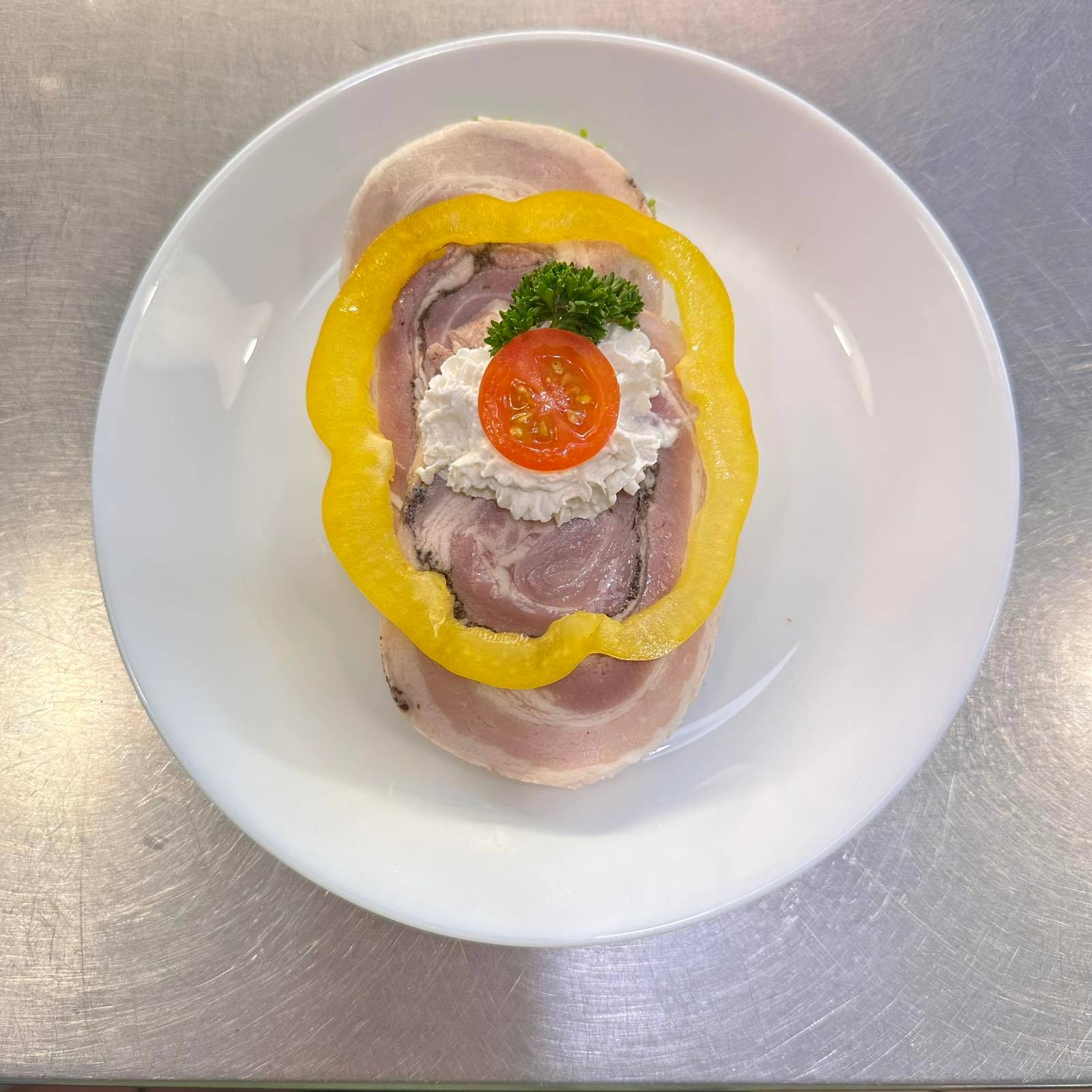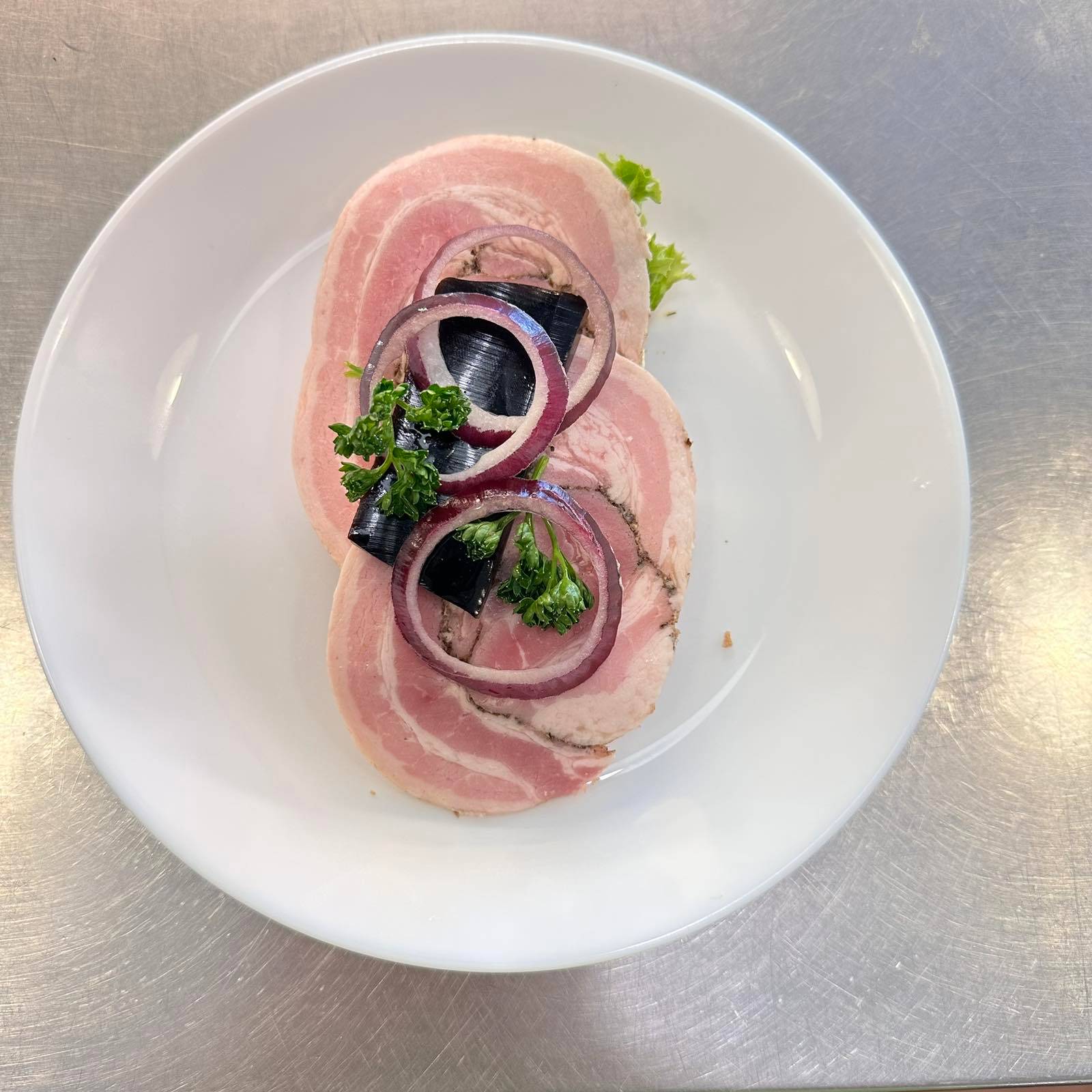 Smörrebröd – Fläskrullad med sky & lök