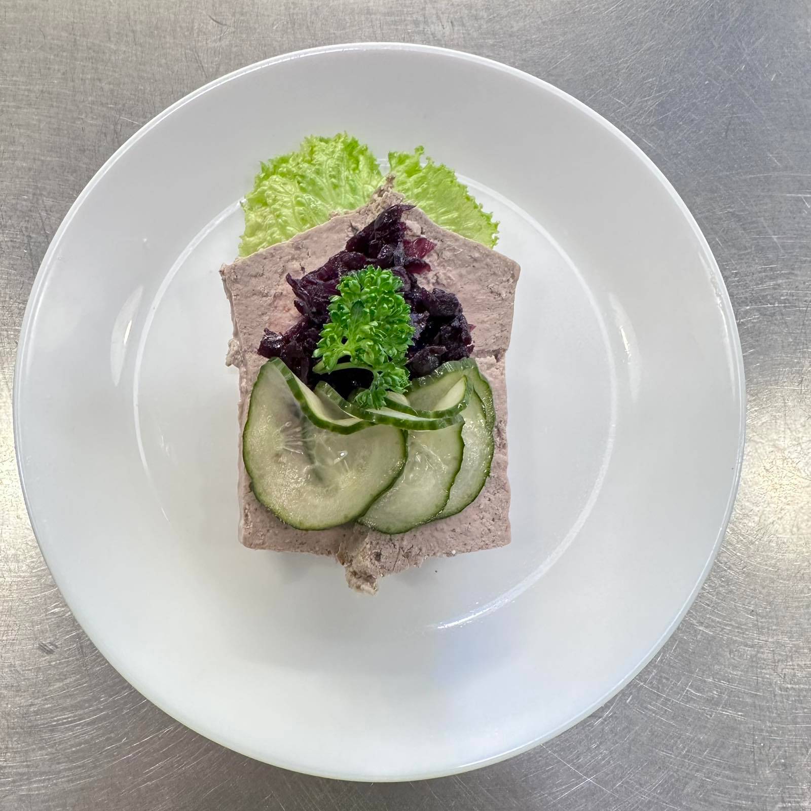 Dansk grovhackad leverpastej på mörkt rågbröd, serverad med vår hemgjorda rödkål och krispiga inlagda gurka. En klassisk smakupplevelse med traditionella tillbehör. Meddela allergier vid beställning.