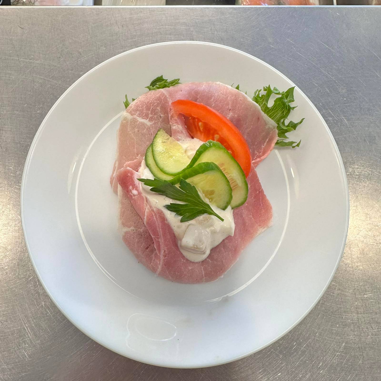 Saftig, helstekt fläskfilé serverad kall i tunna skivor på mörkt rågbröd. En smakrik favorit som kombineras med klassiska tillbehör för en fyllig lunch. Meddela allergier vid beställning.